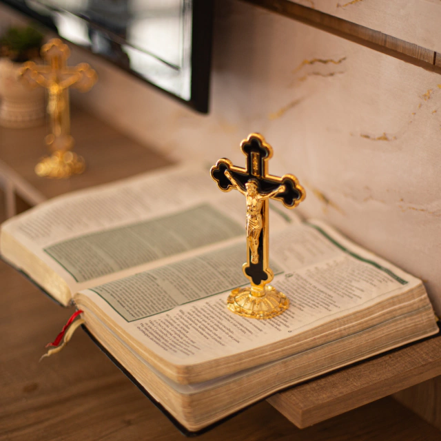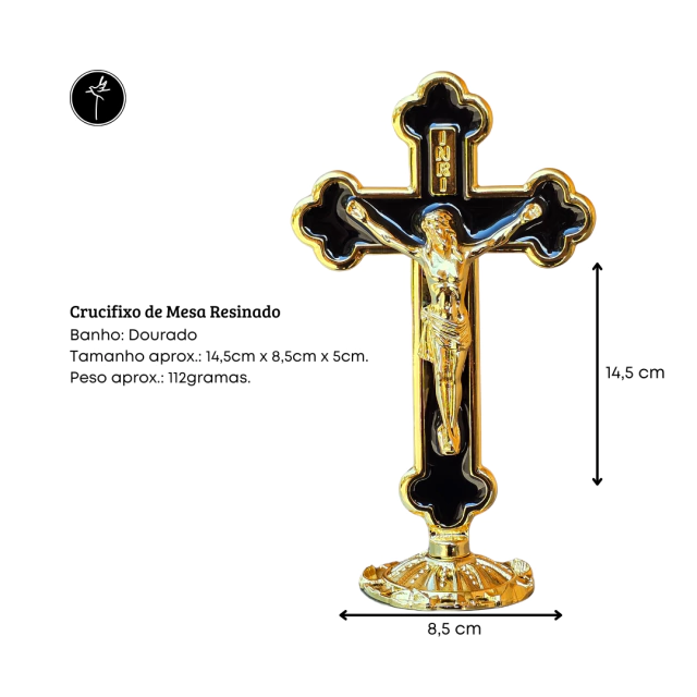 Crucifixo de mesa Jesus Cristo – Dourado Resinado