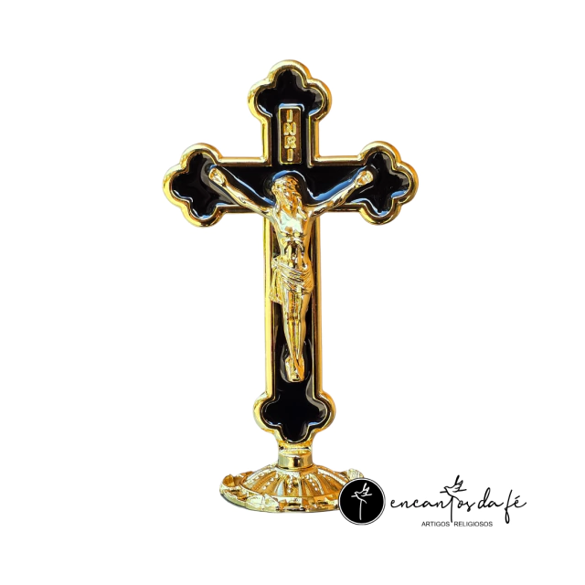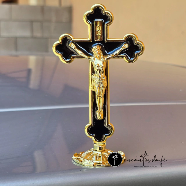 O Crucifixo de mesa Jesus Cristo é uma peça sublime que une fé e sofisticação. Composto em liga de metal zamak com um encantador banho dourado, este crucifixo traz um toque de elegância para qualquer ambiente.