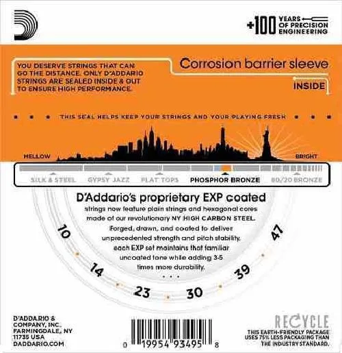 ENCORDOAMENTO PARA VIOLÃO AÇO 10-47 D’ADDARIO COATED PHOSPHOR BRONZE EXP15