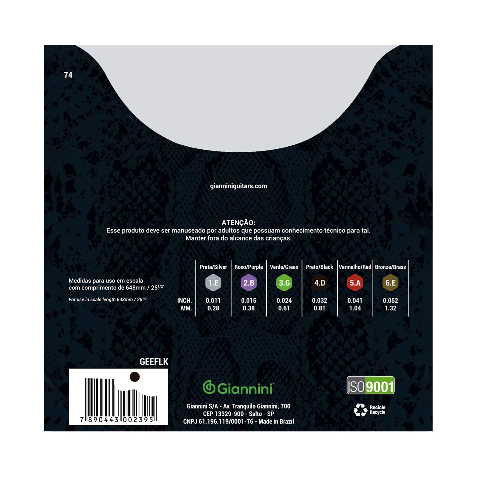 A série Cobra apresenta toda a versalidade dos encordoamentos Giannini. O encordoamento para violão aço Giannini Cobra GEEFLK é revestido com Bronze 85/15, indicado para músicos que gostam de encordoamento com um som brilhante, encorpado e com ótimo sustain.