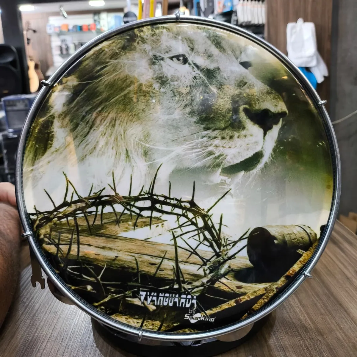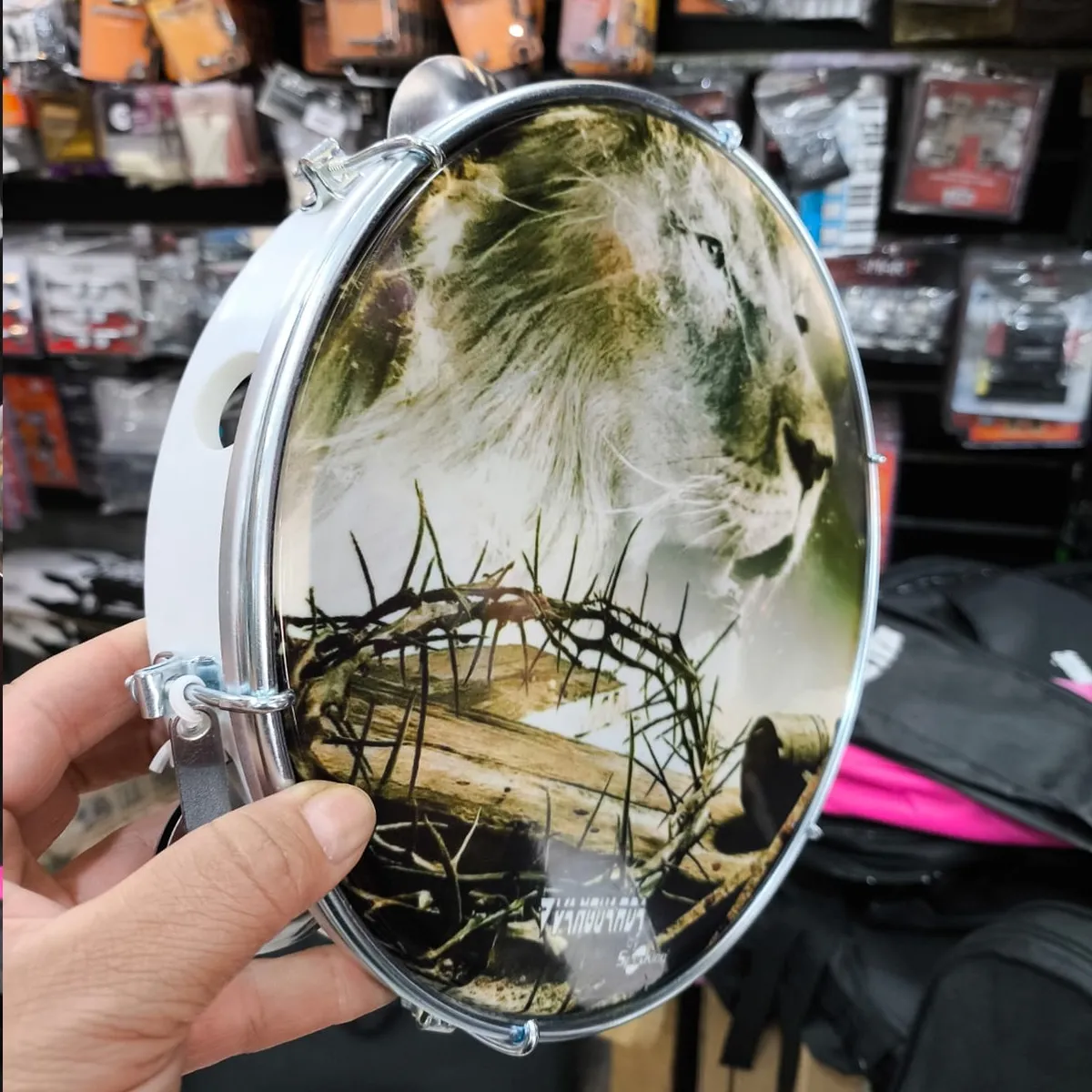 Seu design exclusivo com a estampa de leão não só é visualmente atraente, mas também reflete a força e a energia que este instrumento pode trazer para suas apresentações. Seja você um músico profissional ou um entusiasta, este pandeiro é uma adição valiosa ao seu arsenal musical.